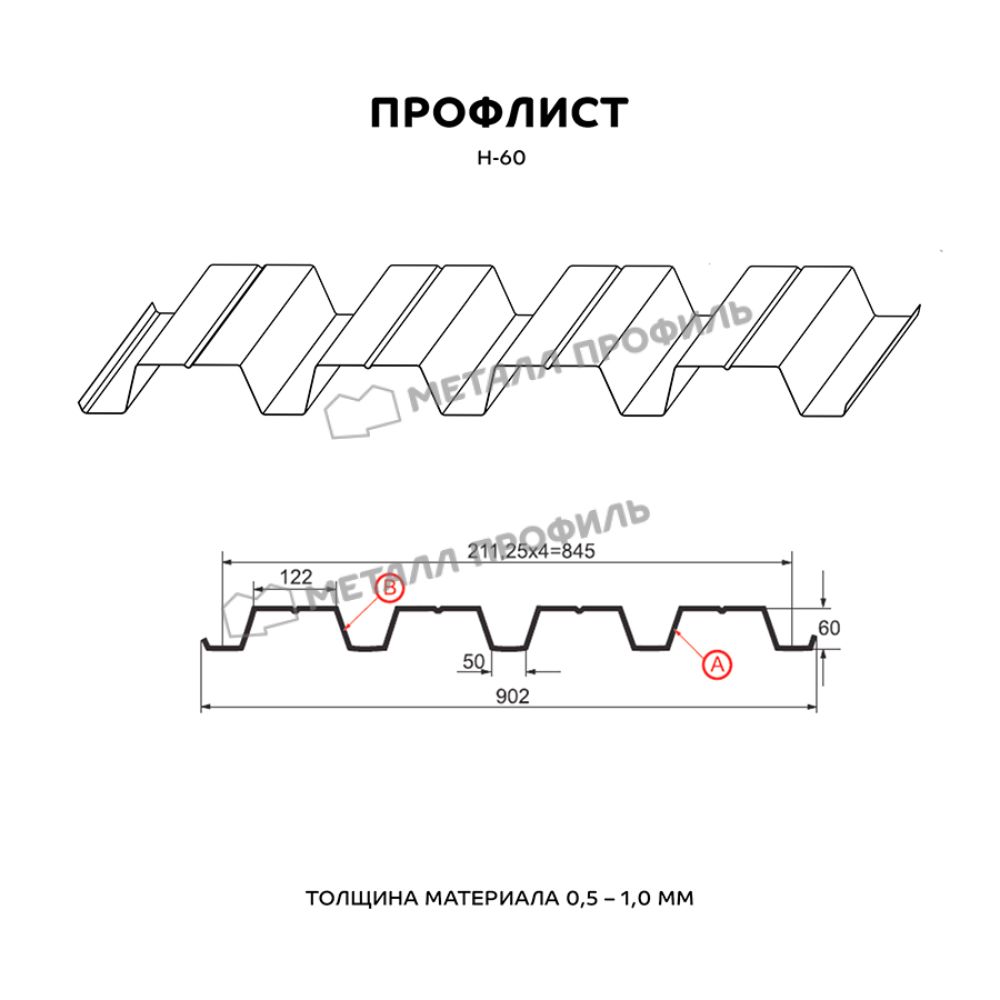 Профлист Металл Профиль Н-60 0,5 PURETAN® RR 29 Вишневый - это качественный и надежный материал для строительства и отделки различных объектов. Он изготовлен из высококачественной стали толщиной 0,5 мм, что обеспечивает ему прочность и долговечность.